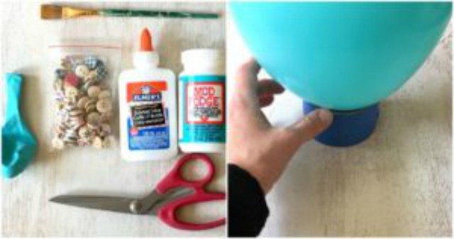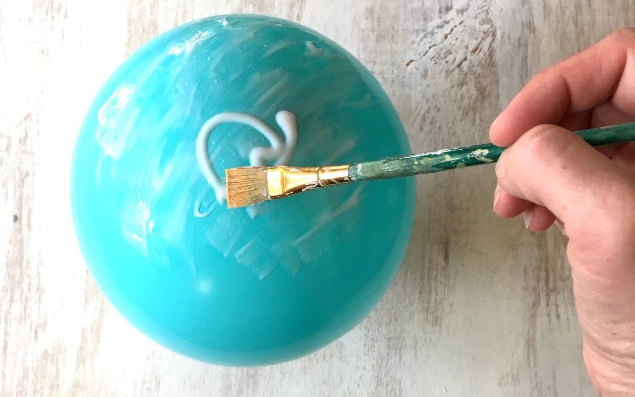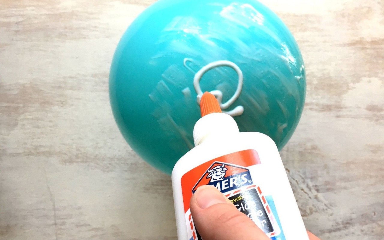 Шаг 3: покройте шарик плотным слоем клея ПВА. Можно предварительно покрыть шарик тонким слоем лака с блестками.