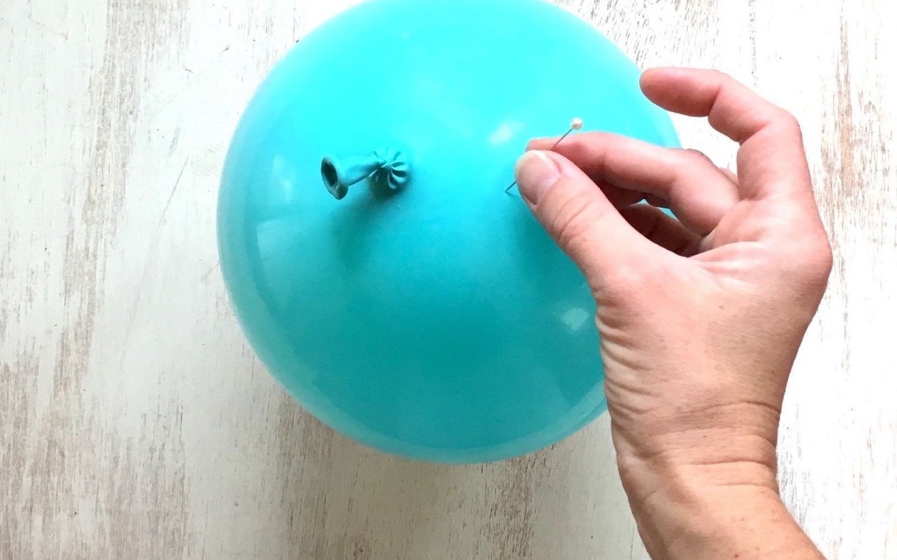 Шаг 8: После полного высыхания лака проткните шарик булавкой или иголкой. Аккуратно достаньте остатки шарика из миски. Если на изделие остался клей, аккуратно отрежьте его ножницами.