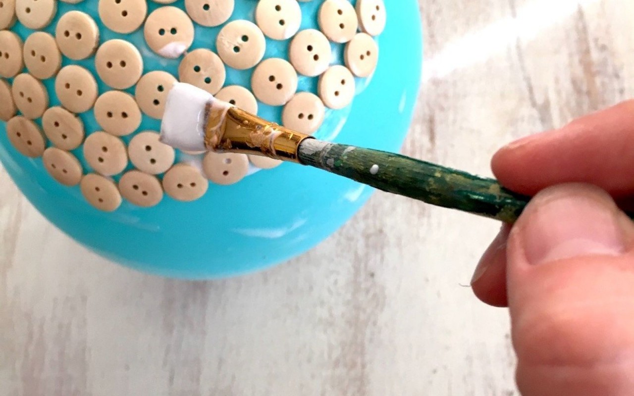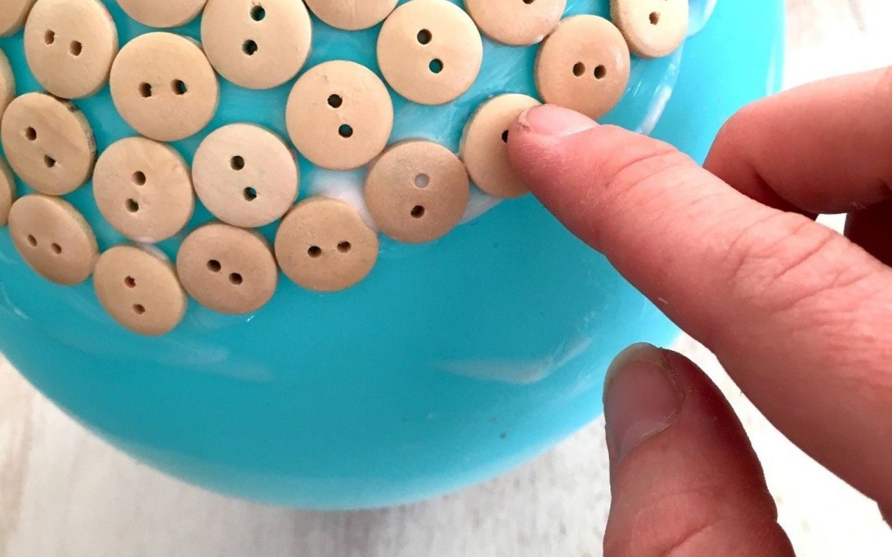 Шаг 6: Приклеивайте пуговицы так, чтобы они касались друг друга своими краями. Дополнительно фиксируйте края клеем друг к другу.