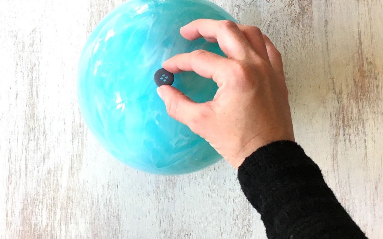 Она будет размером примерно с четверть шара, если считать от макушки.Шаг 2: Установите шарик так, чтобы он не двигался. Для этого подойдет рулон скотча или неглубокая чашка. Постарайтесь поставить шар как можно ровнее.