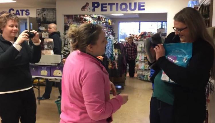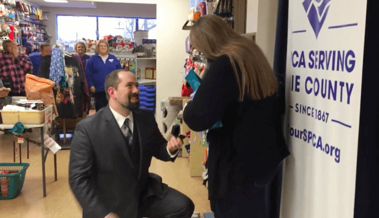 … сделать ей предложение руки и сердца! На ошейнике котенка висела бирочка с сакраментальным вопросом и когда работница приюта попросила Кэт ей прочесть, та все поняла. Ну а что было дальше, смотрите сами.