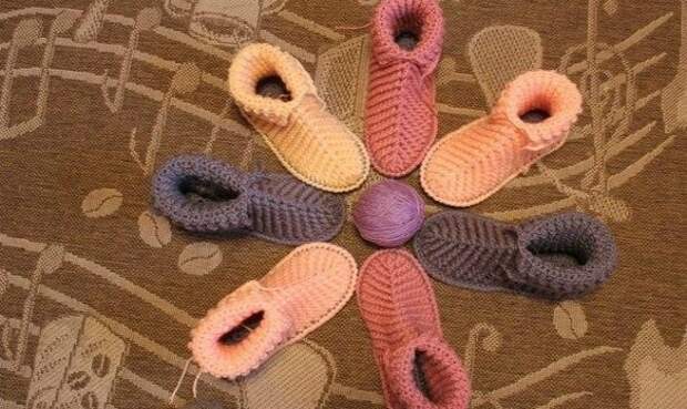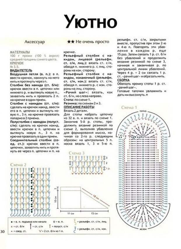п.), столбик без накида (ст. б/н), столбик с накидом (ст. с/н), полустолбик с накидом (полуст. с/н), соединительный столбик (соед. ст.), рельефный столбик с накидом, лицевой (рельефн. ст. с/н, лиц.), рельефный столбик с накидом, изнаночный (рельефн. ст. с/н, изн.), рачий шаг. Описание и схемы вязания домашних сапожек крючком смотрите ниже.Схема и описание