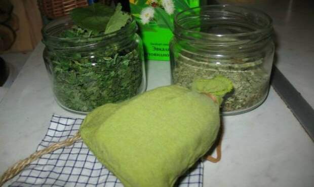 В мешочек (10х25 см) складываем травы, которые действуют как антисептики и оздоравливают кожу: