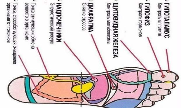 6. Возле внутреннего края стопы, ближе к середине, расположены нервные окончания, связанные с работойнадпочечников. Если вы чувствуете непреодолимую усталость, массаж этого места быстро поможет вам обрести утраченную энергичность.