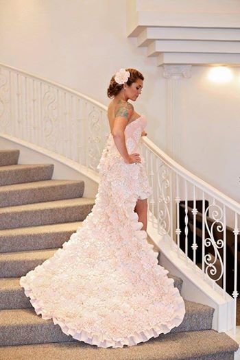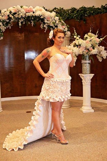 Сам конкурс обычно проводился в Нью-Йорке. Многие участники не один год занимаются разработкой дизайна свадебного платья из необычного материала. Эмбер из Техаса долго и кропотливо над этим трудилась. Её платье получилось великолепным, в бело-розовых тонах. Очень женственное и нежное.