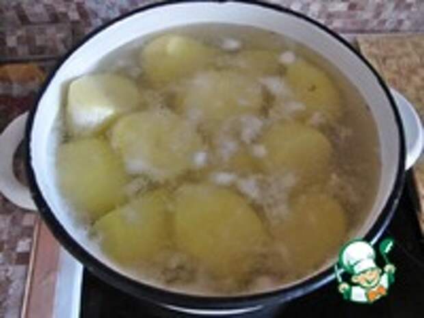 ![]() | Отваренный картофель измельчить в пюре, смешать с яйцом, крахмалом, солью. |