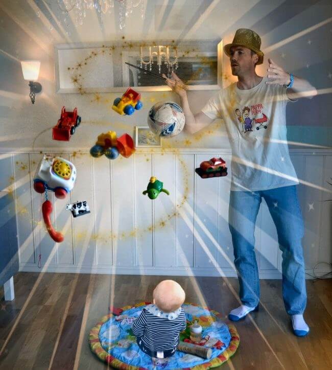 Идея создания таких коллажей пришла в голову Андреасу еще до рождения ребенка, когда они с супругой осваивали новое для себя ремесло — изучали, что в их доме есть опасного для младенца и как придется перекроить свою жизнь. Потрясенный количеством необходимых новшеств и ограничений, папа в пику решил сделать нечто противоположное, эдакую отдушину для родителей. И вот что у него получается.