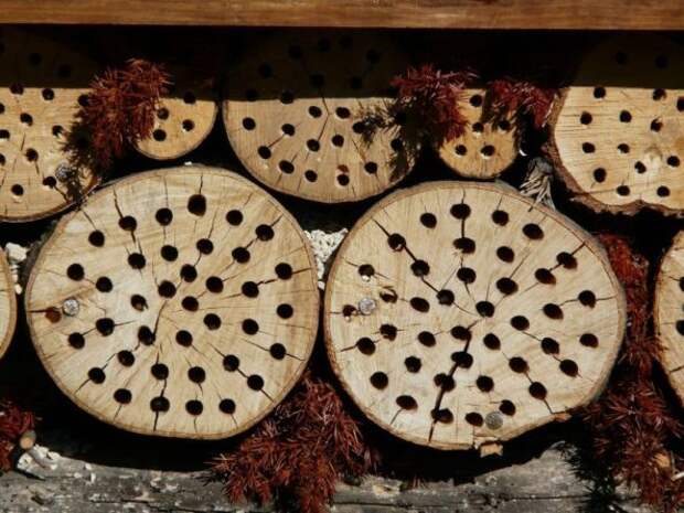 Есть и более простые конструкции с насверленными отверстиями в спилах дерева