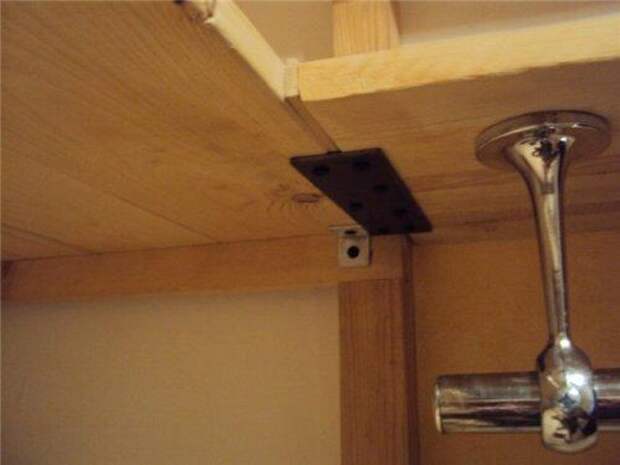 К нижней части висячих полок нужно прикрепить кронштейны для хромированных труб, которые будут выполнять функцию держателя для вешалок.