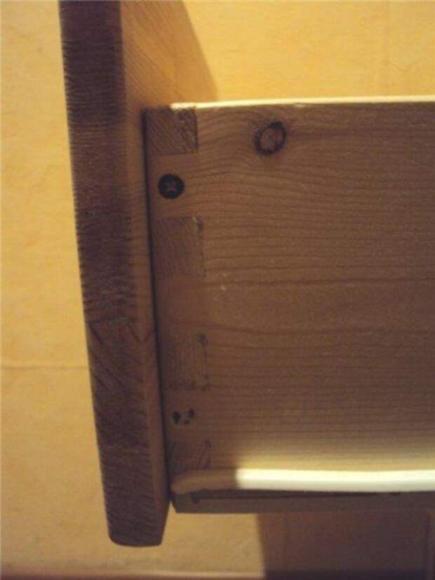 Выдвижные ящички легко собираются из досок, а в качестве дна используется фанера.