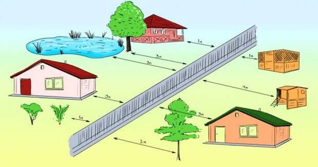 - Расстояние между жилым домом и ограждением должно составлять 3 метра.