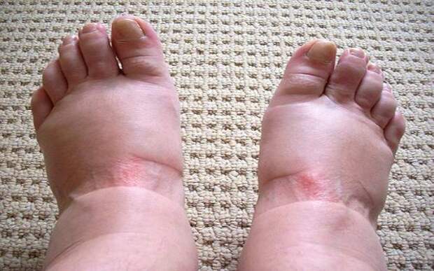 Лишняя жидкость накапливается под кожей, в тканями организма, вызывая отёки рук, лодыжек, ног, лица, а иногда и всего тела.