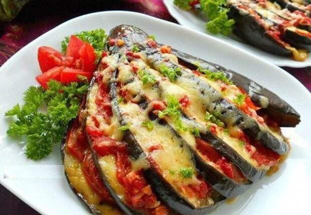 Веер из баклажан запеченный с сыром, помидорами и куриным филе отличное самостоятельное блюдо, также хорош как закуска перед основным блюдом, можно кушать и горячим и холодным.