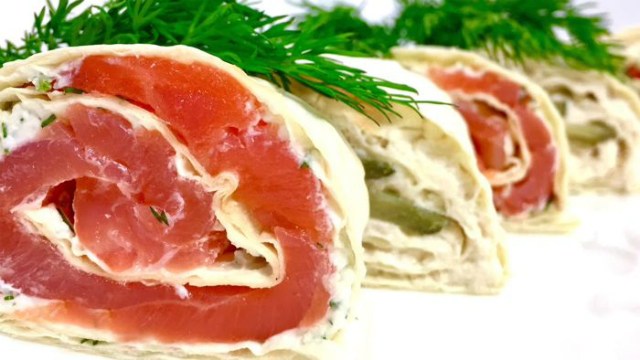 - Выложить поверх паштета огурчик и туго свернуть рулет.