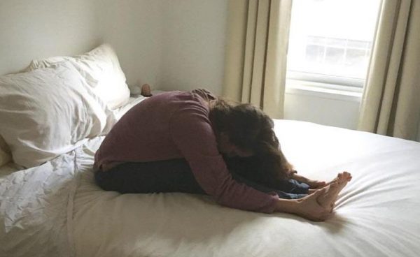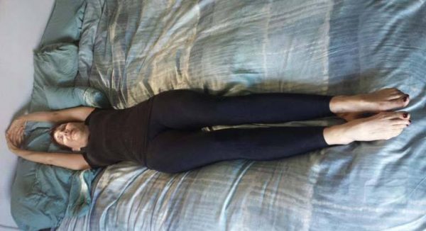 Сядьте на кровати, и выпрямите ноги. Вдохните, выдохните и тянитесь к пальцами ног. Вдохните снова, выдохните и потянитесь еще больше. Тяните шею тоже. Сделайте 10 повторений, и расслабитесь.