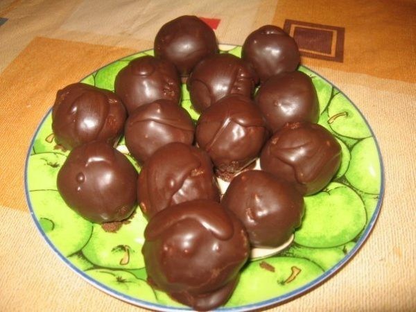 - Через 35-45 минут можно доставать заготовку и лепить конфеты. Им можно придать абсолютно любую форму и перед подачей обвалять в какао.