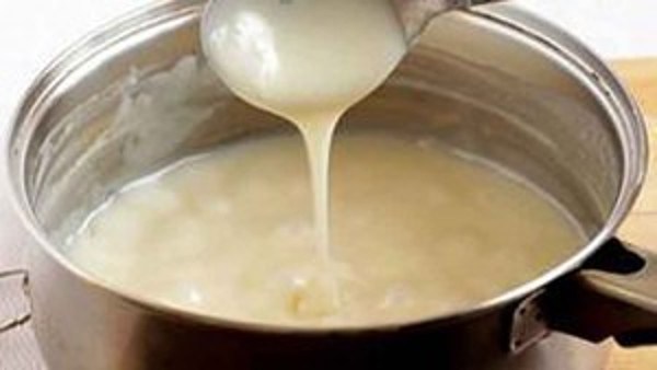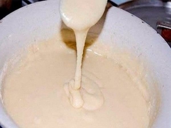- В мисочку сложить все ингредиенты и залить топлёным молоком.