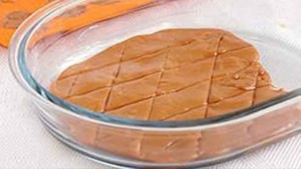 - Теперь нам нужно оставить ириски на некоторое время, чтобы они застыли.