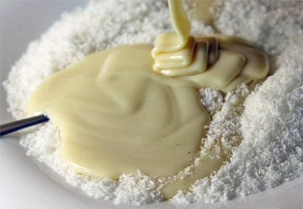 - Небольшую порцию кокосовой стружки (около 50 гр) откладываем в сторону для обсыпки готовых конфет.