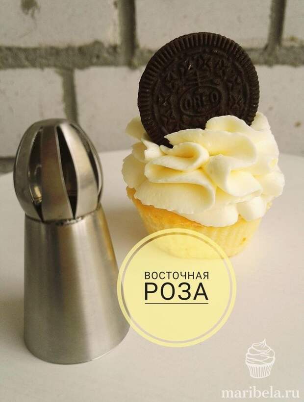 Я крайне рекомендую приобрести насадку 2D (1 M) и насадку восточная роза. Это самые оптимальные насадки для украшения кексов, по моему мнению.