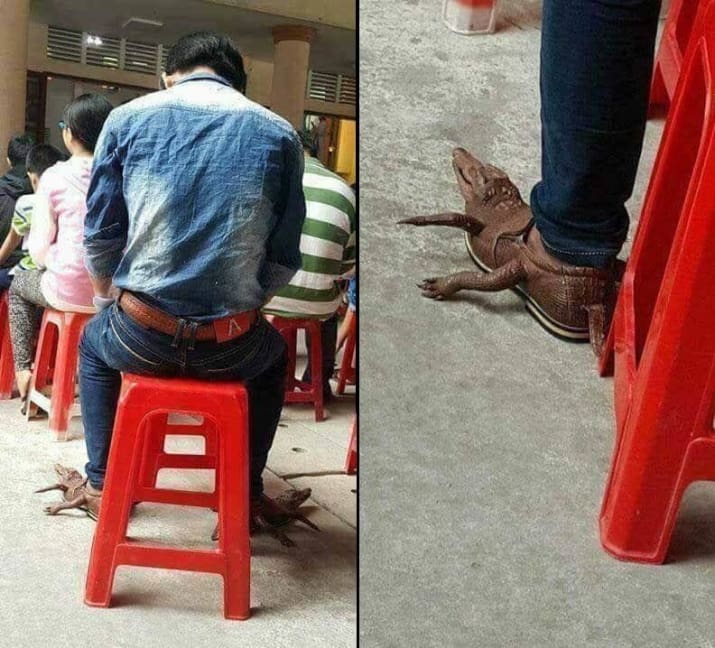 Нет, крокодильчик уже помер, когда из него сделали туфли