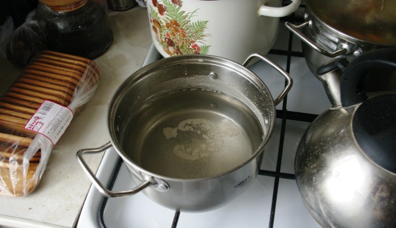 1. Приготовьте тузлук. Налейте воду в кастрюлю, добавьте соль, поставьте на огонь, перемешайте, чтобы кристаллы растворились. Доведите тузлук до кипения, снимите с огня.