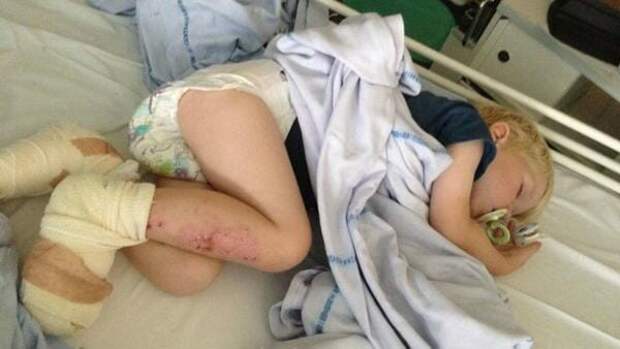 Но уже через несколько мгновений в панике и отчаянии она направлялась в отделение неотложной помощи. Ножки её маленького мальчика были обожжены так сильно, что с них начала слазить кожа.