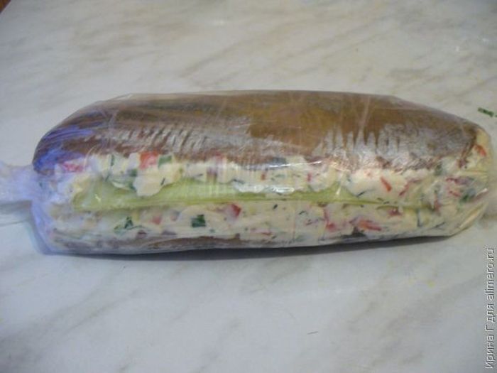 Обмотайте плотно пищевой пленкой и ставим в холодильник на пару часов.