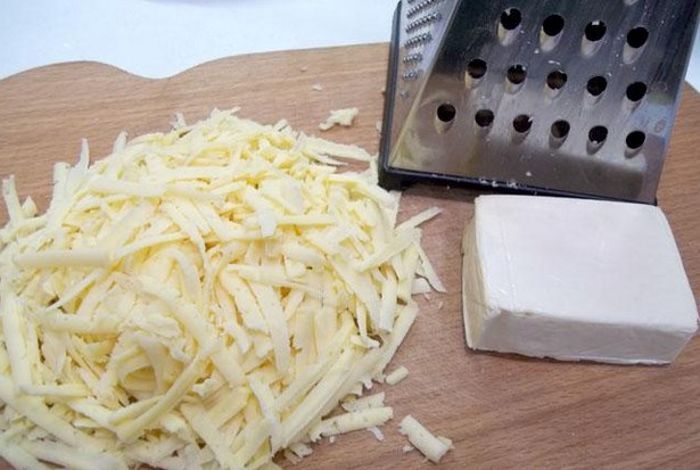 Плавленный сырок натираем на терке, добавьте мягкое сливочное масло и мелко нарезанную зелень.