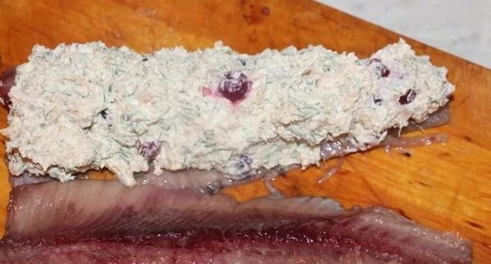 Выкладываем сырную массу на филе и сверху накройте второй.