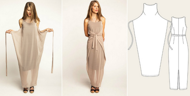 Платье-кейп поистине уникально! На основе одной выкройки из различных видов ткани можно создать коллекцию нарядов. Например, из шелка — для особых случаев, из трикотажа — для повседневной носки…