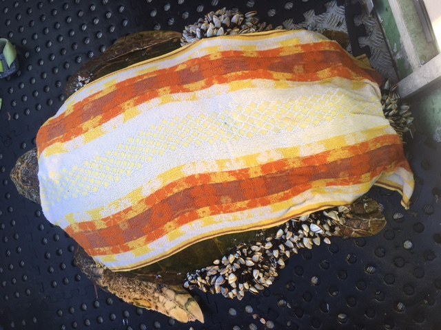 Забота о морской черепахе, а именно избавление ее тела от ракушек, лечение, адаптационный период, осуществлялась силами работников Программы морской охраны (МСР). За счет этой Программы черепаху полностью обследовали, в том числе проведена рентгеноскопия, чтобы убедиться в том, что атака ракушек — это единственная проблема животного, и оно не съело никакого мусора.
