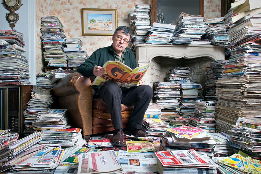 Фотографу удалось собрать более 70 кубометров мусора: 1,600 бутылок из под молока, 4 800 рулонов туалетной бумаги и 800 кг газет. Все это он разделили на разные кучки, чтобы создать эффект тревожности.
