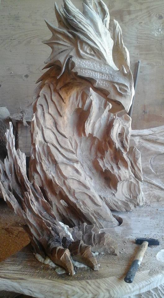 Илья трудится в Германии в составе команды, которая работает с крупными формами, используя бензопилы.