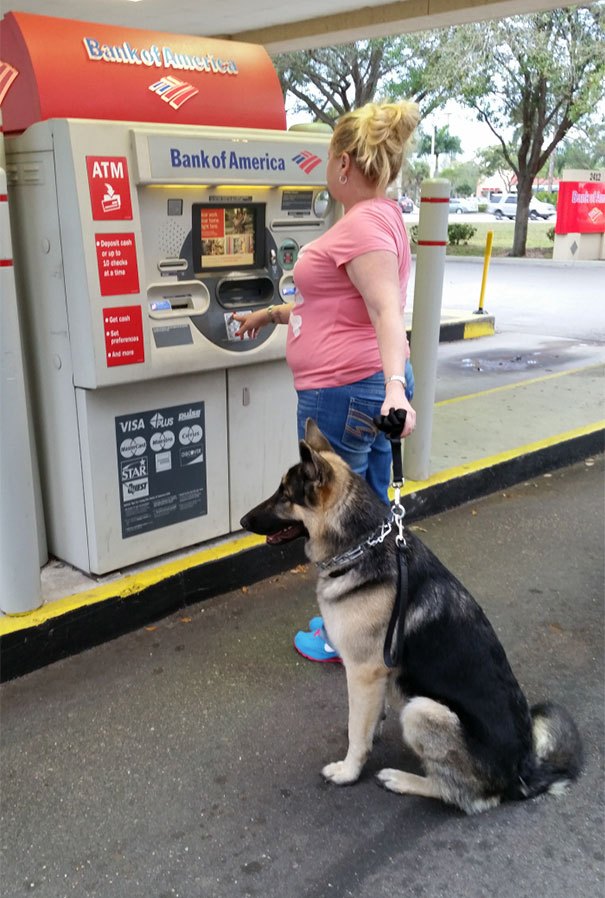 В сети все большую популярность набирают снимки, где владельцы собак снимают наличные в сопровождении своих питомцев. И несмотря на то, что некоторые любимицы совсем не выглядят злыми, вору, осмелившемуся посягнуть на имущество хозяина, явно не поздоровиться!