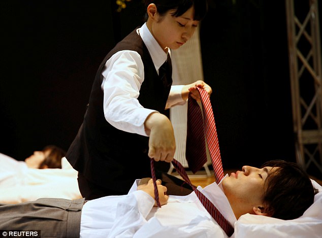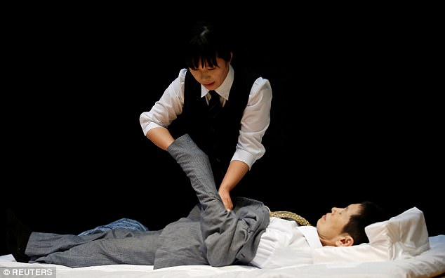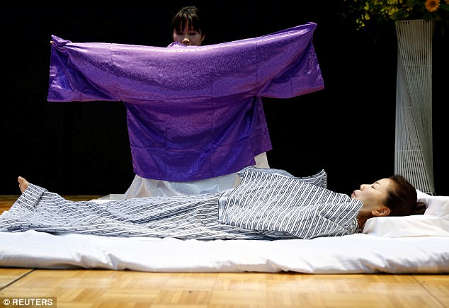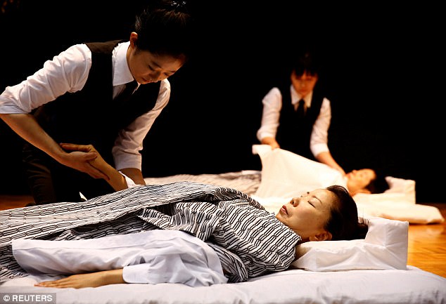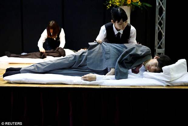 net знает, какую роль она играет в жизни японцев и потому проявила интерес к этому странному, но при всем при том красивому виду соревнований: художественное одевание мертвых тел перед погребением.Спешим заверить — настоящих мертвецов на сцене не было, их роль сыграли волонтеры-добровольцы. Манекенами тут не отделаешься, одним из важных условий конкурса является демонстрация почтительного отношения к покойному. Ворочать труп, аки мешок с сеном, категорически противопоказано — и без того неспокойный дух усопшего может и обидеться. По традициям синтоизма процесс облачения в похоронную одежду чем-то похож на православное отпевание: упрощает процесс перехода души из этого мира в загробный.