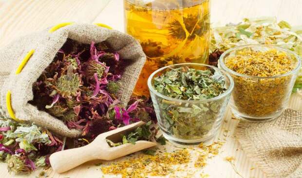 девясил (корни), калина (кора), толокнянка (листья), тополь черный (почки), папоротник мужской (корневища), крушина (кора), лапчатка (корневища), горец змеиный (корневища).