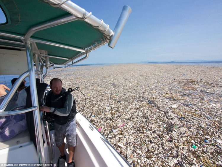 Фотографии сделаны у острова Роатан, недалеко от побережья Гондураса. Мусор здесь собрался со всего региона — специалисты полагают, что основной поток пришел из Гватемалы. Но на самом деле эти легкие нетонущие отходы принесло водами рек в течение сезона дождей отовсюду, после чего уже в море мусор сбился в это гигантское пятно. Отвратительное зрелище в тропическом раю.