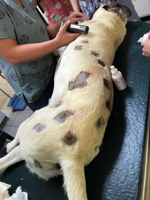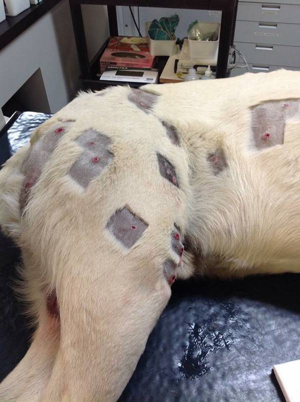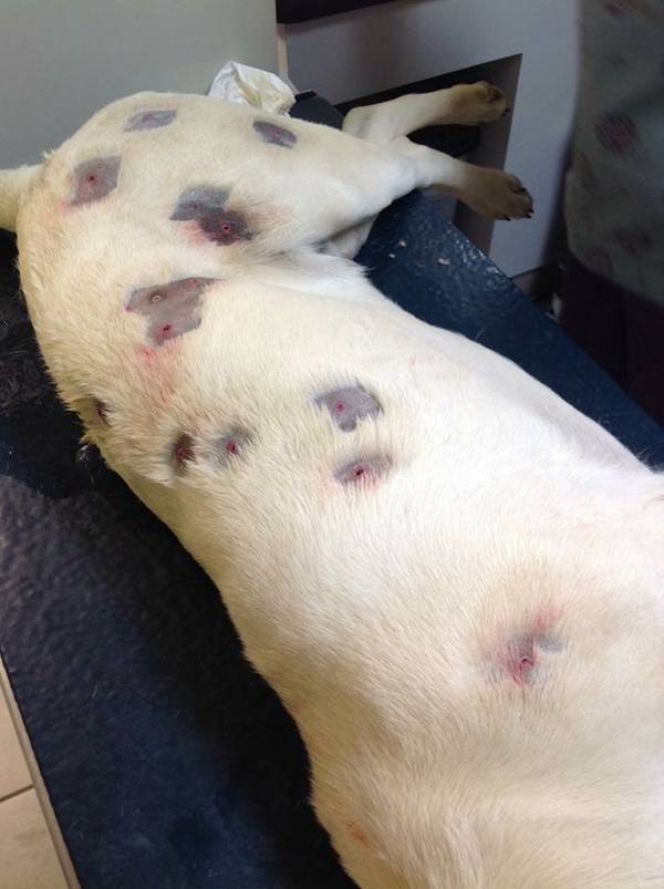 Их было так много, что для извлечения ветеринар был вынужден сбрить шерсть питомца во многих местах. Общее количество удаленных пуль было равно двадцати семи. Несколько из них ветеринар оставил в теле питомца, чтобы не ухудшить его состояние. Более того, немного позже он нашел еще двадцать штук.