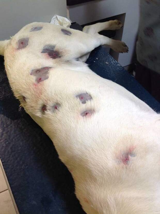 Выяснилось, что в бедную собаку стреляли более семидесяти раз.