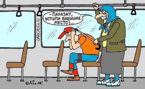 Меня всегда забавляет, когда в ответ на пост в духе: Он не уступил бабушке/женщине/ребенку место в метро, козел, комментаторы отвечают: Ужас! В Европу хотим, а место не уступаем!